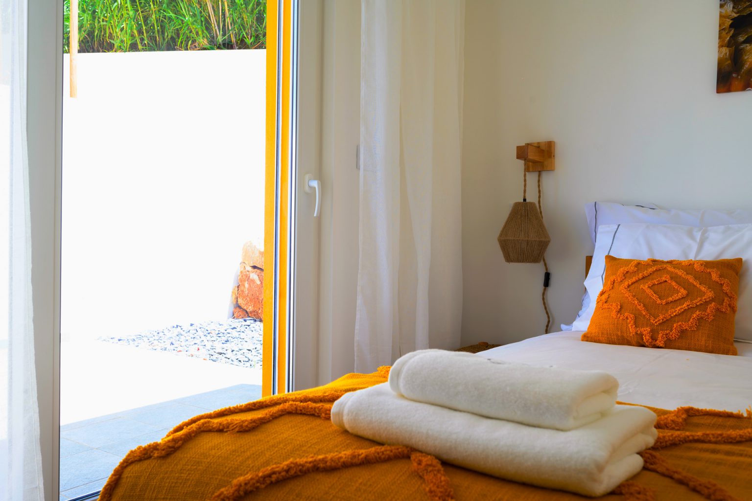 Casa com 1 quarto com cama de casal, inclui casa de banho privada, sala de estar mobilada com TV. A kitchenette tem disponível pequenos eletrodomésticos tais como, frigorífico, micro-ondas, placa de fogão, máquina de café e cafeteira elétrica. Inclui 1 terraço com vista para a piscina e para o vale.